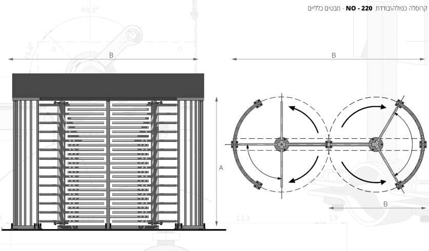 הקרוסלה NO-220 מיוצרת לפי מידות הלקוח בהתאמה אישית לכל דרישה. הקרוסלה מיוצרת בעזרת טכנולוגיות עכשוויות המספקות לה אמינות ואיכות לתקופה ארוכת טווח , עמידות בתנאי שטח שונים ועלות תחזוקה נמוכה.