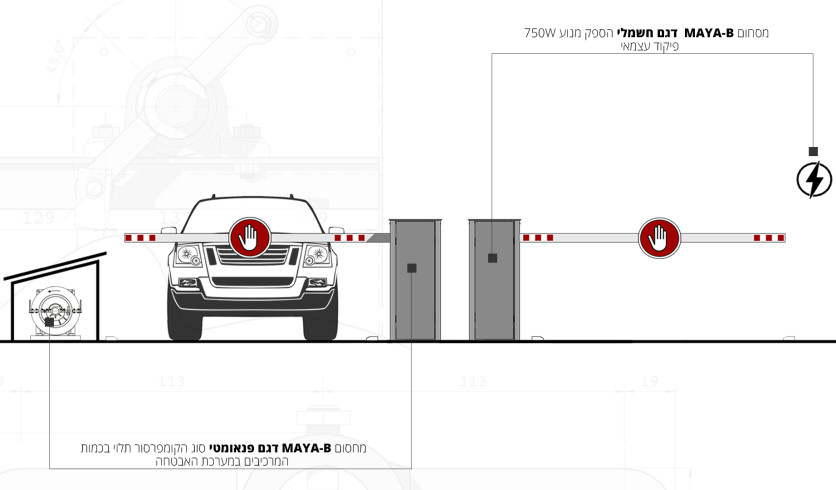 ניתן להתקין את מחסום MAYA-B הן כיחידה עצמאית והן בשילוב עם מערכות נוספות דרך הבקר. כמו כן, המחסום ניתן להתקנה הן במערכת פניאומאטית והן במערכת חשמלית..