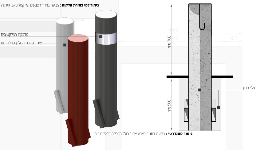 קיימות שני אופציות גימור של עמודי בולרד סטטי: